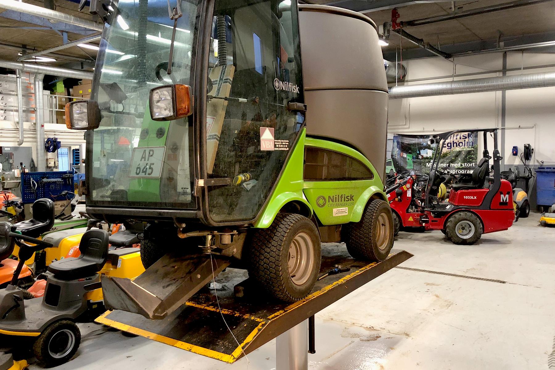 Høj driftssikkerhed er vigtig i en travl hverdag. Både for professionelle og private. På vores 500 m2 store værksted er vi altid klar til at tage imod dig og dine maskiner. Det gælder både store maskiner el-trucks og redskabsbærer eller små maskiner som hækkeklippere og motorsave.