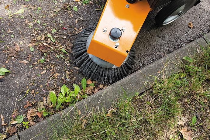 En mekanisk ukrudtsbørste er meget effektiv, da den løsner og fjerner ukrudtet med det samme. Den bruges typisk til at fjerne ukrudt fra stier, fortove i rendestene og mellem fliser og brosten.