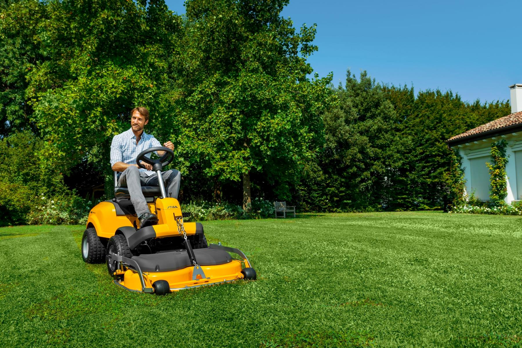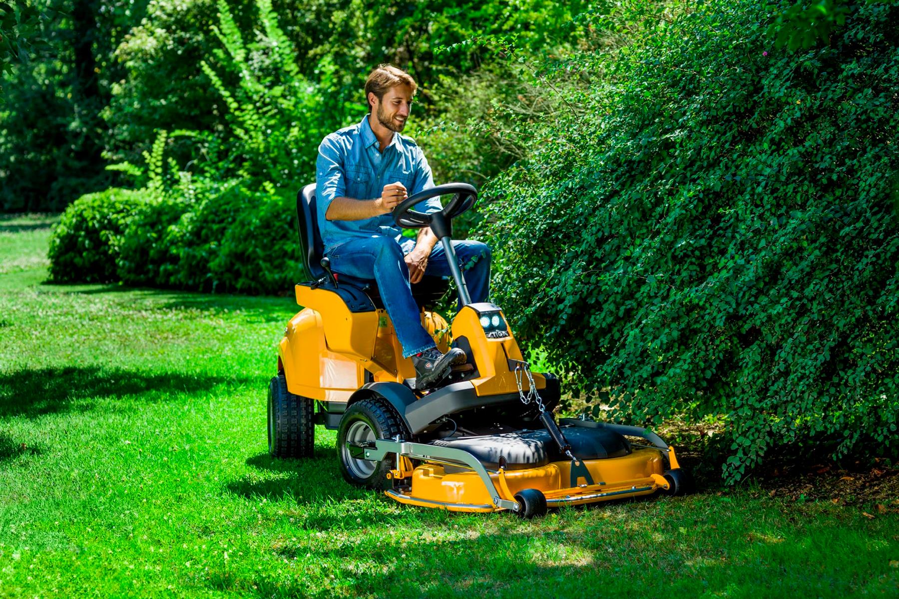 Effektiv Rider med 103 cm Combi-Klippebord, som giver mulighed for førsteklasses klipning med BioClip® og bagudkast. Egnet til hus- og landejere, som kræver høj effektivitet, brugervenlighed, uovertruffen manøvredygtighed og ægte køreglæde. Centerstyringen og det frontmonterede Klippebord er ensbetydende med intuitiv brug, fremragende tilgængelighed under klippearbejdet og et godt overblik over arbejdsområdet.
