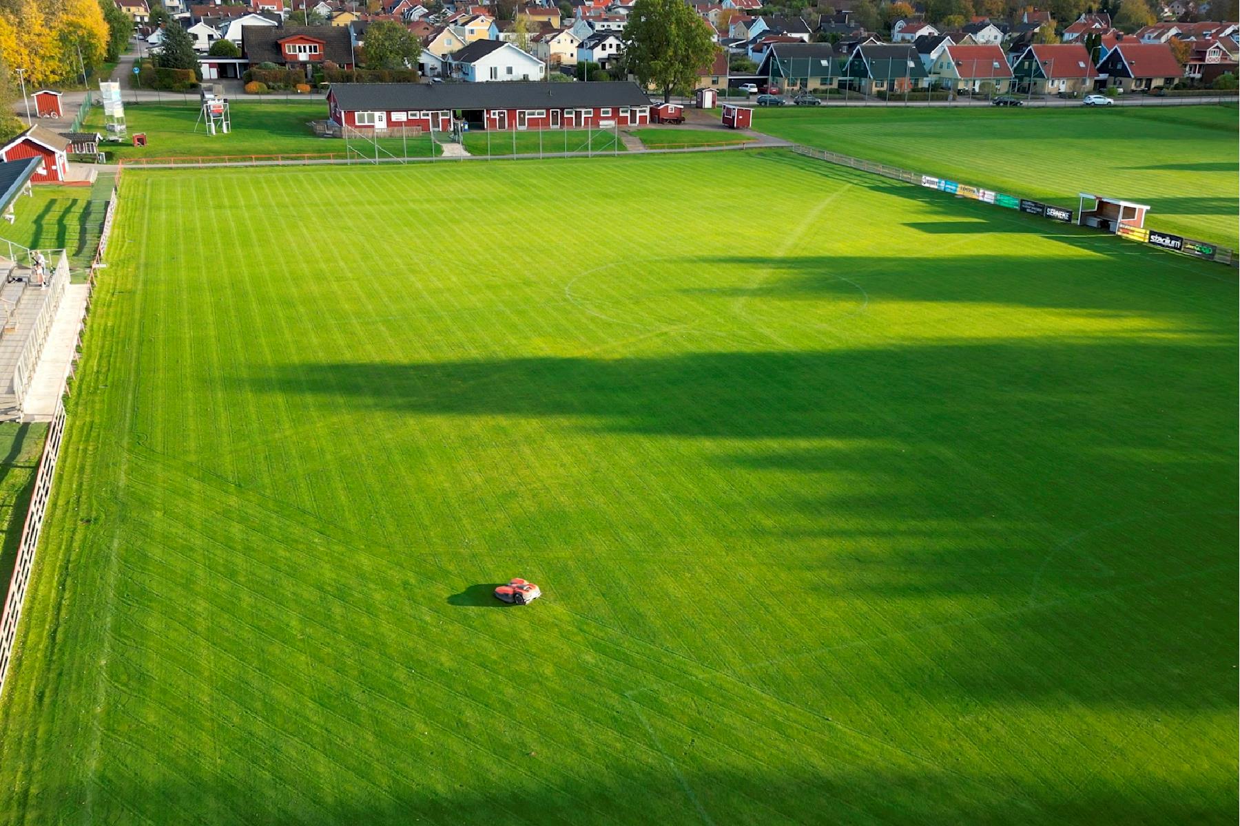 Få de flotteste fodboldbaner. Uden unædigt brug af store tunge maskiner. Samtidigt kan det være en Co2 neutral drifts-løsning. Med de store hjul der er på robotten, holder den banen flot og jævn. Alt efter jordbund kan det være nødvendigt at tromle enkelte gange i løbet af året hvis der ønskes en endnu højere standard. Lyder dette interessent så kontakt os.....