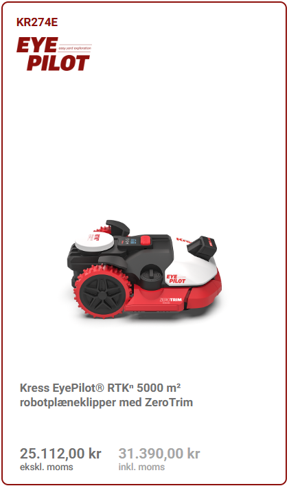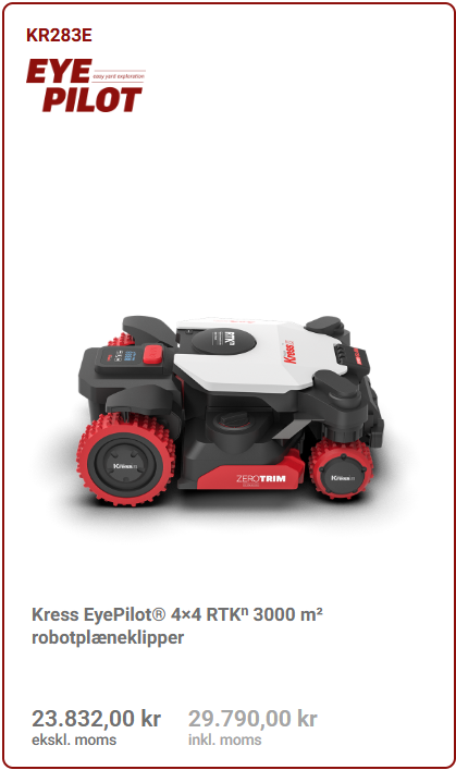 Skarpe knive er vigtige for et godt klipperesultat. Vi forhandler kun robotplæneklippere, der tager højde for din sikkerhed. Afstanden mellem det udvendige karosseri og knivene skal være ekstra lang, så mennesker og dyr ikke kommer i berøring med knivene. Desuden har maskinerne en indbygget sikkerhedsordning, så knivene stopper, hvis maskinen løftes eller vælter.